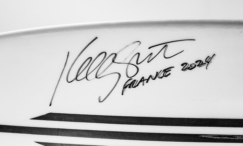 This is not a replica or a collector's reissue. It's the actual board Kelly surfed on French soil during the festival, carrying both the marks of the session and the signature of the most influential surfer of all time. Now, for the first time, it's available through Bell Surf.
